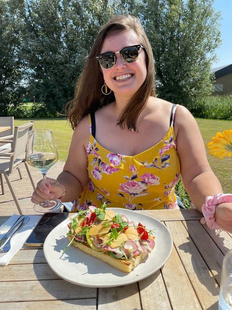 Met wijntje, windje en een zeer uitgebreide plank – prijs kwaliteit echt top – zaten we op het uitgebreide terras echt mooi aan. Lekker beppen, mooi mensen kijken en af en toe een gezellige serveerster aan tafel (props voor het personeel!).